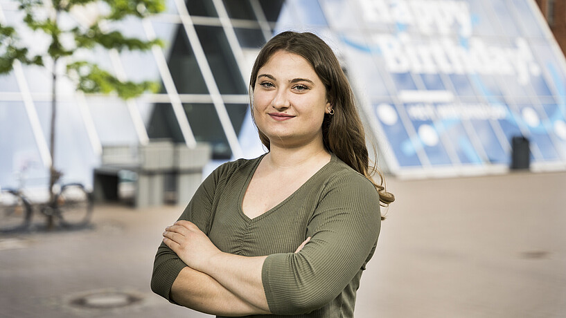 „Im Theater ist das Kostüm oft der erste Eindruck, den das Publikum von einer Figur bekommt. Damit geht eine große Verantwortung einher. Mit meinen Kostümen kann ich Emotionen erwecken, Geschichten erzählen und Dinge sichtbar machen, die sonst im Verborgenen bleiben. Ich möchte, dass das Publikum wieder mehr fühlt“, erzählt Fabienne Ank, die Kostümdesign im Bachelorstudiengang studiert. Ihre Liebe zum Theater entdeckte Ank schon in ihrer Kindheit. Besonders faszinierend fand sie den Moment, wenn sich der Vorhang hebt und das Publikum plötzlich komplett still wird. Ank schloss eine Ausbildung zur Schneiderin ab und machte erste Erfahrungen im Theaterbetrieb. „Als ich das erste Mal Theaterproben begleitet habe, habe ich dann erlebt, wie die Figuren weiter zum Leben erwachen, sobald die Kostüme dazu kommen und ich wollte unbedingt ein Teil dieser Magie werden“, erinnert sie sich.